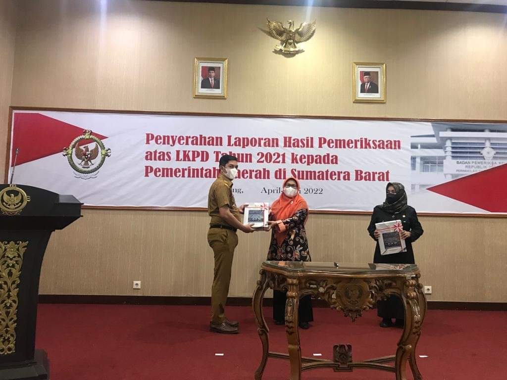 UTUSANINDO.COM, SAWAHLUNTO – Badan Pemeriksa Keuangan (BPK) RI Perwakilan Sumbar memberikan predikat Opini Wajar Tanpa Pengecualian (WTP) kepada Pemko Sawahlunto terhadap Laporan Hasil Pemeriksaan (LHP) Laporan Keuangan Pemerintah Daerah (LKPD) Tahun Anggaran 2021, di Padang, Selasa 26 April 2022.